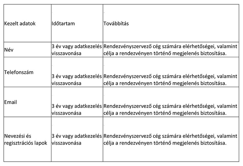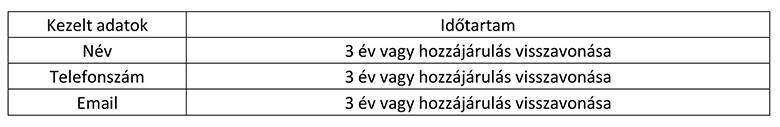 Az adatkezelés jogalapja: az érintett hozzájárulása. A személyes adatok tárolásának időtartama: a hozzájárulás visszavonásáig.